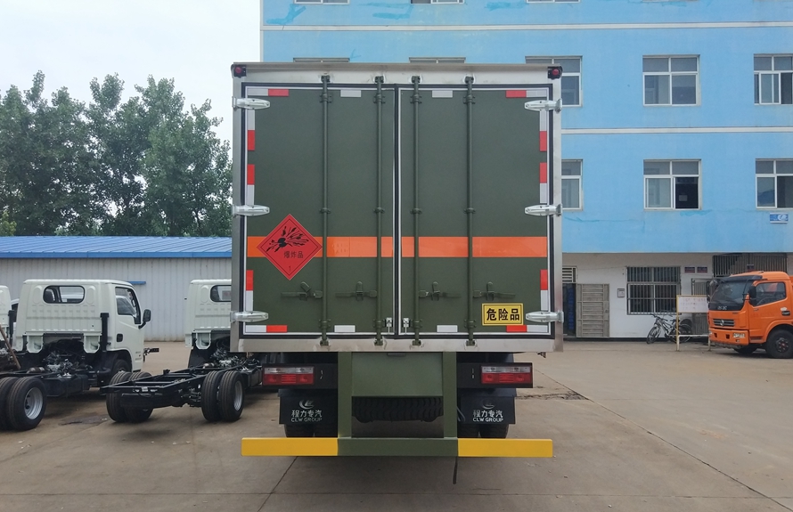 1、廂體部分:廂體為雙層金屬骨架結(jié)構(gòu),外部為冷扎鋼板,內(nèi)壁采用鋁合金板蒙面,夾層為隔熱阻燃材料填充。設(shè)置對開門,側(cè)壁設(shè)有防雨功能自然通風(fēng)窗口,以使廂內(nèi)外空氣流動(dòng),廂體內(nèi)部做防靜電處理,廂體底部與廂內(nèi)前部鋪有阻燃導(dǎo)靜電膠板,并與底盤等電位連接,通過車輛后端的導(dǎo)靜電裝置與大地相連,可防止靜電火花的產(chǎn)生和車輛靜電及時(shí)釋放,提高易燃?xì)怏w廂式運(yùn)輸車的安全性。廂體內(nèi)部前面和側(cè)面裝有固定拉環(huán),與捆綁帶使用捆綁貨物以避免移動(dòng),保證安全。