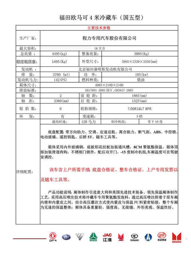 福田歐馬可4米冷藏車