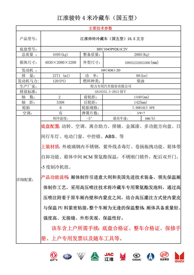 江淮駿鈴4米冷藏車