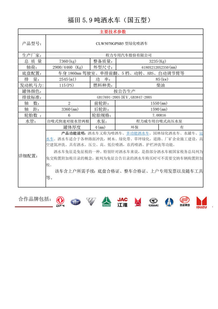 福田國五5.9噸灑水車