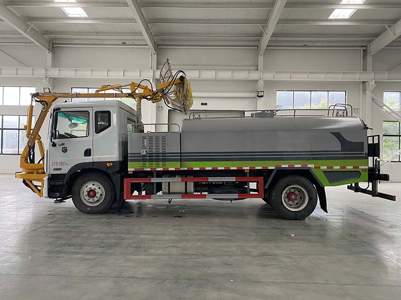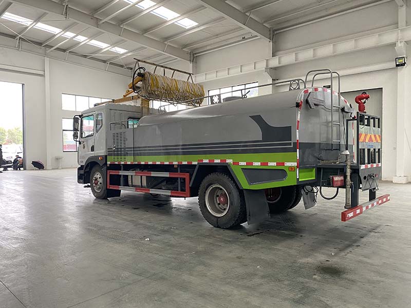 上裝罐體嚴格按公告尺寸制作,公告容積為:9.77立方米,實際容積約為12立方,罐體材質采用Q235碳鋼材質制作,前后封頭約為5mm,防浪板約為3mm,罐體防腐,上裝標配為:前沖、后灑、側防護、爬梯、后置工作平臺及S型高炮,炮調劑大雨、小雨、毛毛雨、采用灑水車大功率專用水泵。